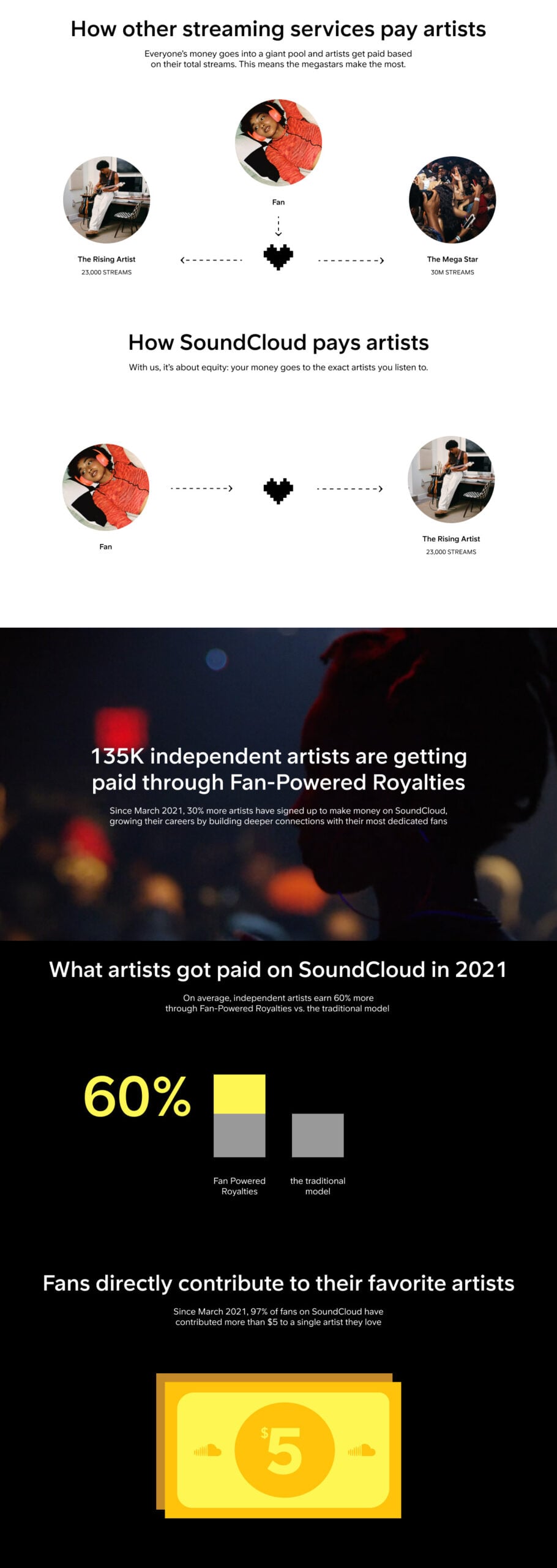 SoundCloud also reports that, since March 2021, there has been a 97% growth in the number of fans on SoundCloud who have individually contributed more than $5 to “a single artist they love” via Fan-Powered Royalties.