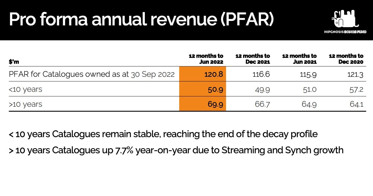 Chris Helm, the CFO, of Hipgnosis Song Management, revealed that, of the songs owned/part-owned by HSF that are less than 10 years old, the average release date was 2016 (i.e. six years ago).