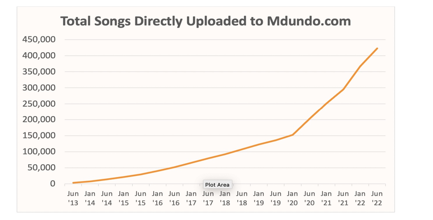 The service allows musicians and rights-holders to create accounts and upload content directly to its platform. Mdundo says that the total number of songs directly uploaded to its service reached 400,000 songs as of June 2022.