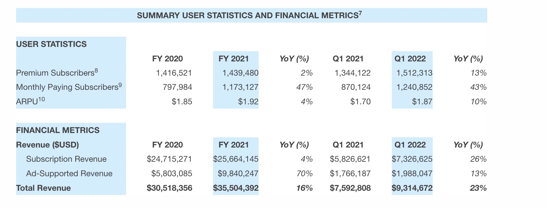 Subscription revenue increased 26% year-over-year to $7.3 million in Q1 2022, with the firm’s ARPU increasing 10% to $1.87.
