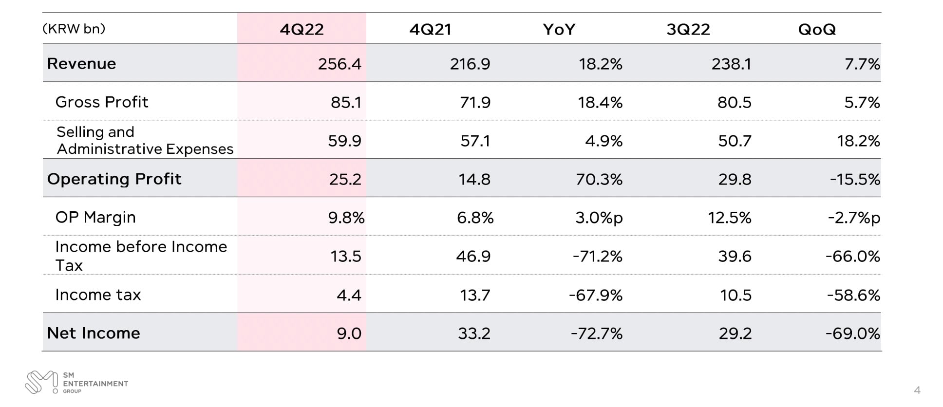 SM’s 2022 performance will be announced soon. We will be explaining the SM 3.0 business strategy, a new IP monetization model following the previously announced “Multi Production Center/Multi Label” strategy, along with performance targets. Along with the SM 3.0 overseas strategy and investment strategy, we will share the business performance and corporate value goals of all SM affiliates. SM will not only reinforce its existing IP business by implementing SM 3.0 but also identify new growth engines to realize revaluation in the market and return the value to the shareholders to create higher corporate value, which will be settled as a virtuous cycle. I am sure many of you shareholders are trying to decide what to do with the tender offer proposal by HYBE. I think it would be beneficial for our shareholders to not respond to the tender offer. Because the changes that will be brought about by SM 3.0 will be of far greater value to the shareholders.