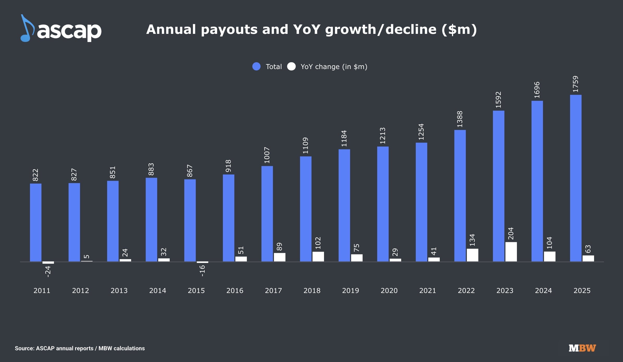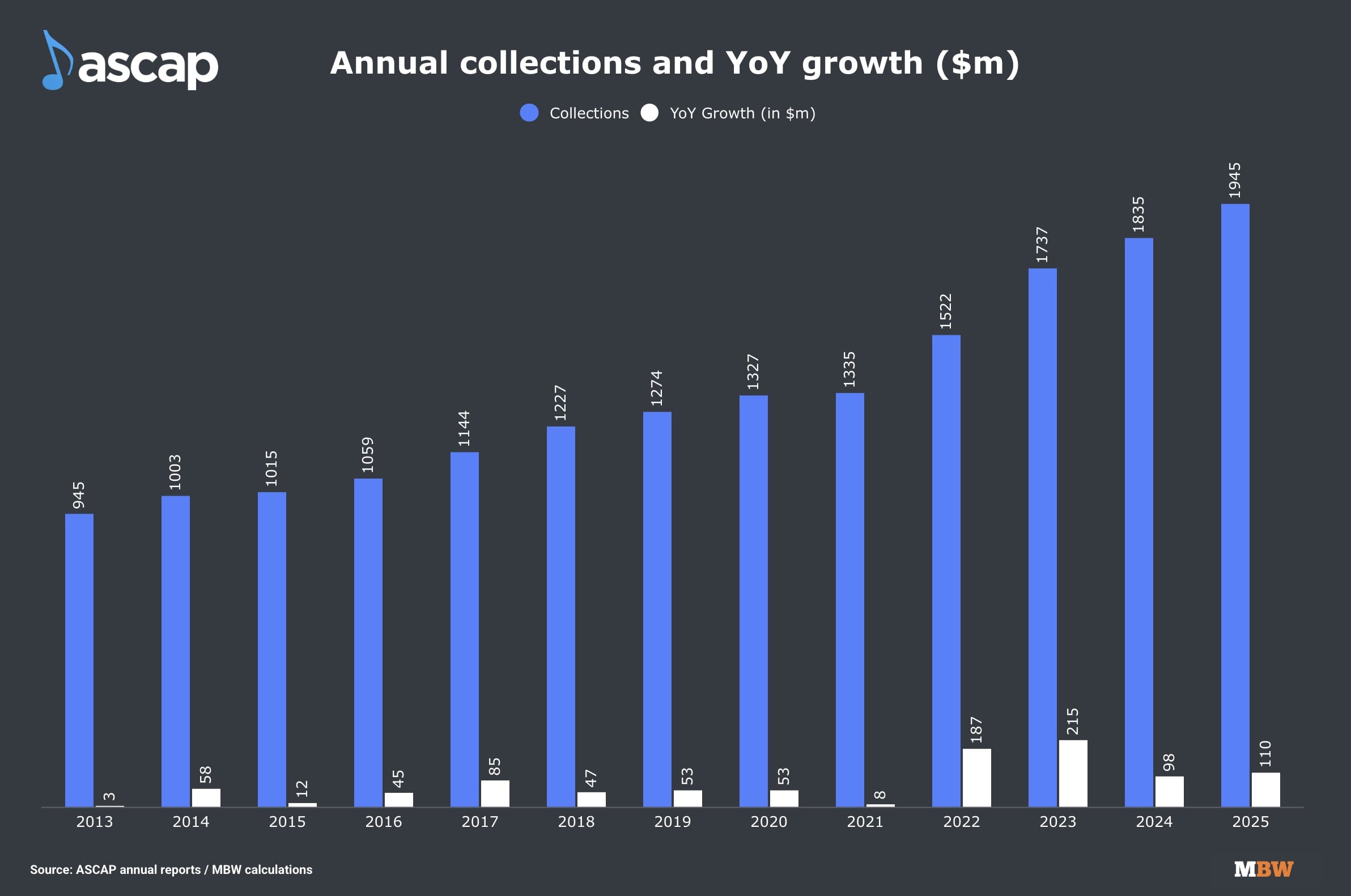 US performance rights organization ASCAP has reported its revenue and royalty payout numbers for 2025, with both figures hitting all-time highs.