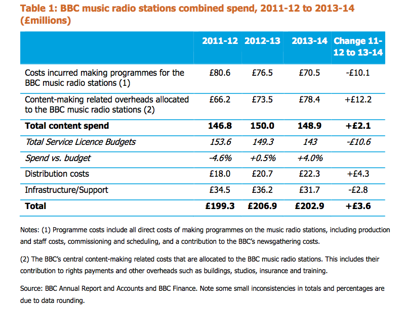 Both measures are an attempt to bring down the expenditure of Radio 1, which spent more than its Service Licence guidelines from the Trust last year as you can see below.