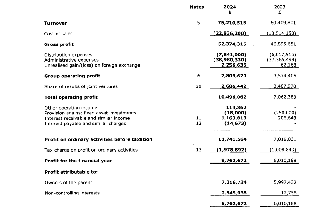 The numbers for 2024 were revealed in a new filing with the UK’s Companies House on Friday (December 12).