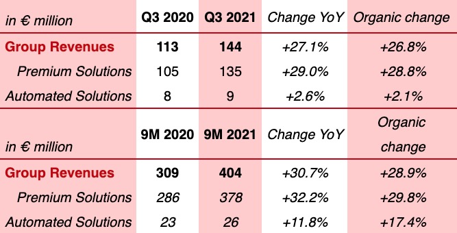 Topline revenues at the company in the quarter were up 26.8% YoY on an organic basis, to €144 million.