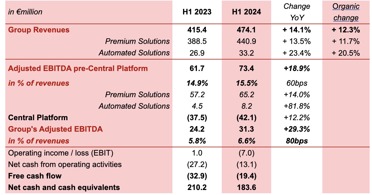 The company’s ‘Premium Solutions’ revenues grew 13.5% YoY – from €388.5 million in H1 2023 – to €440.9 million in H1 2024. On an organic basis, ‘Premium Solutions’ revenues grew 11.7% YoY.