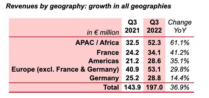The French company saw 61.1% YoYrevenue growth in Asia-Pacific (APAC) plus Africa in the quarter.