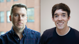 [Pictured: Ian Hogarth and Matt Jones, wearing each other’s faces on their T-shirts.]
