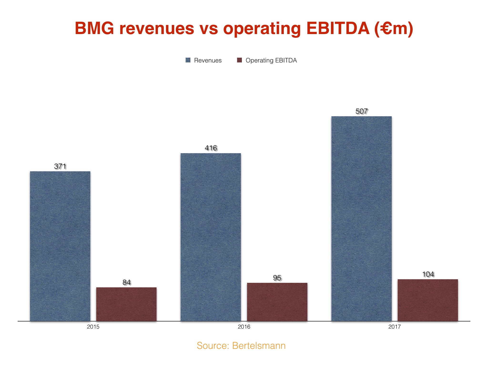 BMG’s operating EBITDA (earnings before interest, taxes, depreciation and amortization) hit €104m ($118m) in 2017.