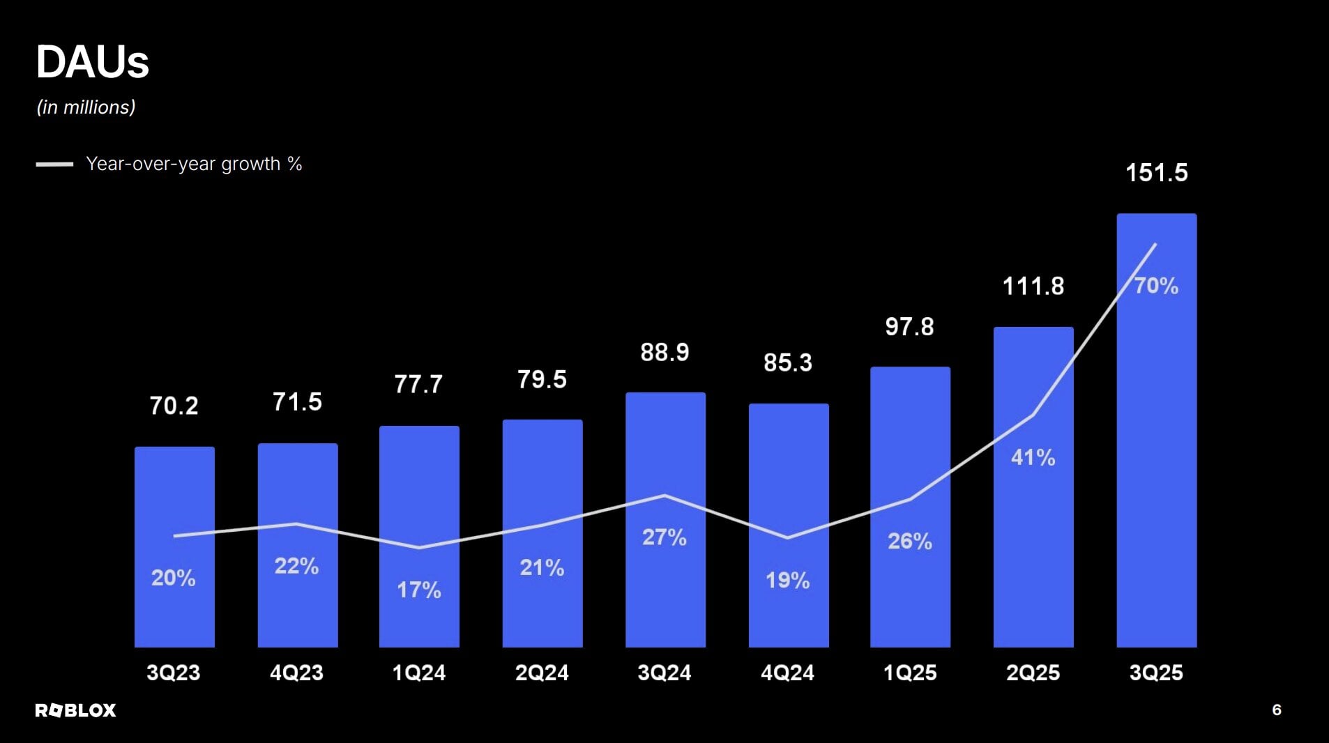Roblox finished Q3 2025 (to end of September) with a significant spike in Daily Active Users (DAUs).