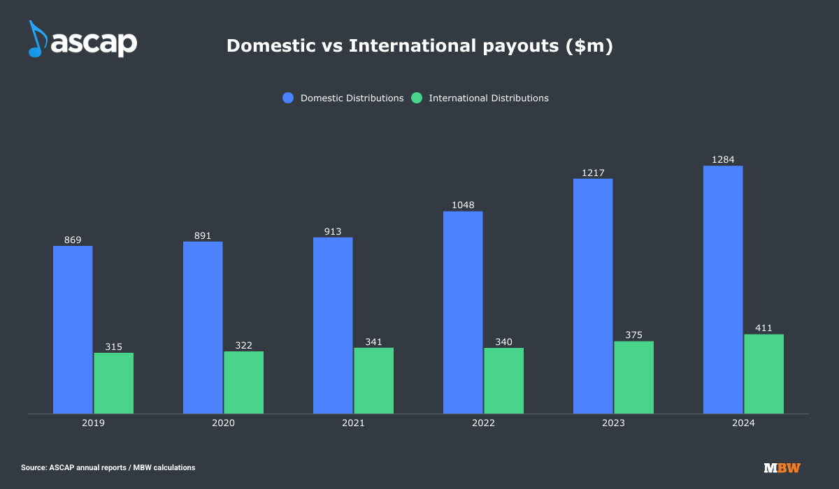 Within the PRO’s annual reports, it confirms how much of its annual collections and member payouts have been generated domestically (in the US) and internationally (outside the US).