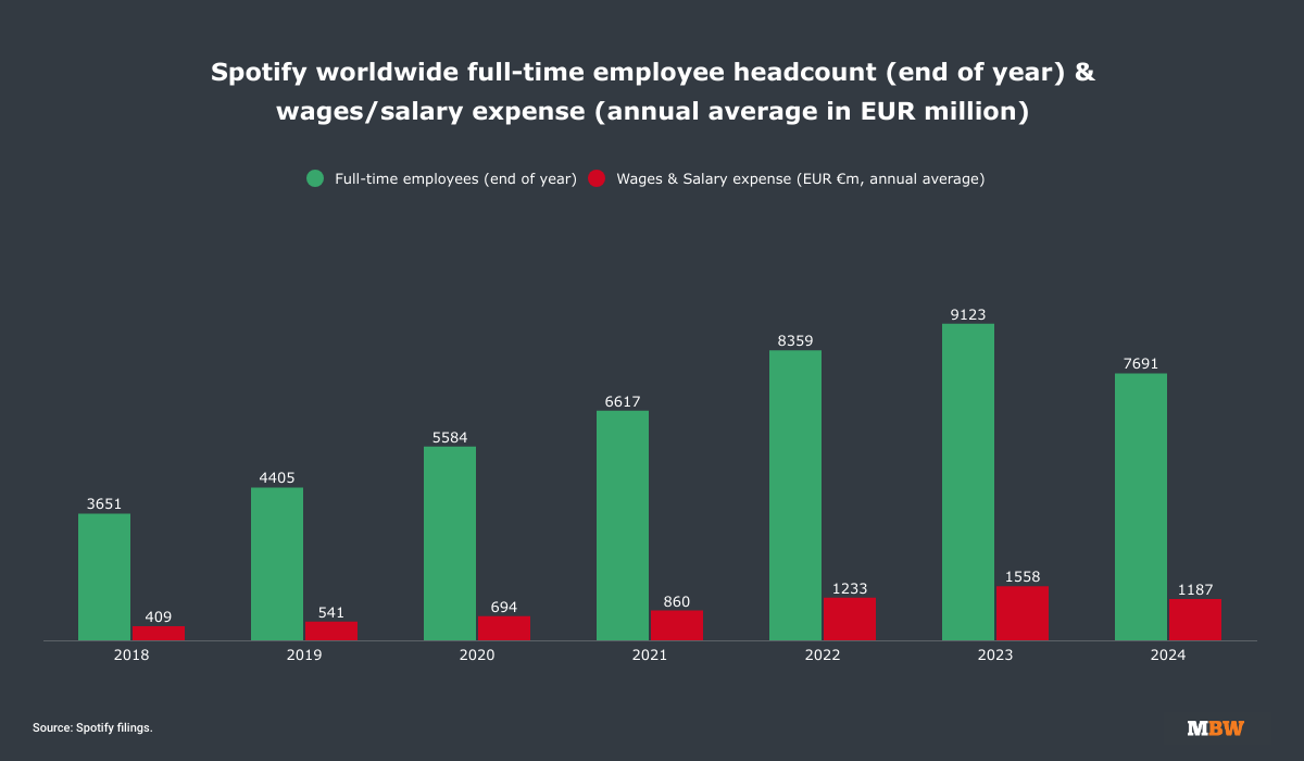 Two of the most crucial stats in this field: SPOT’s total employee headcount, and the total amount of money it’s paying them.