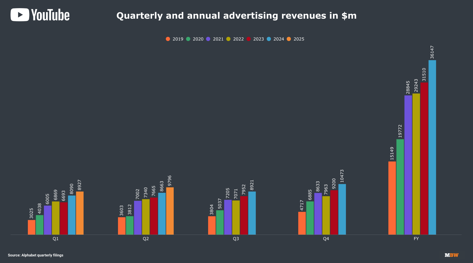 Within these results, the Google parent reveals the quarterly advertising revenues of YouTube.