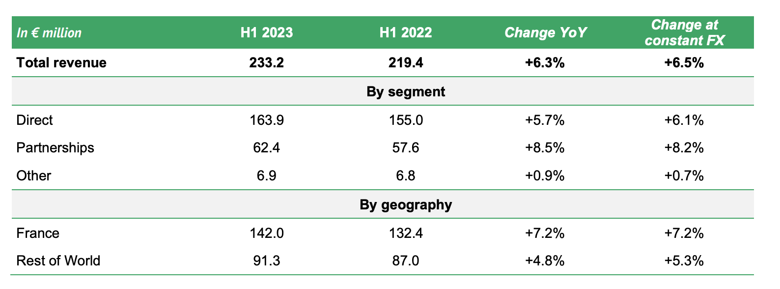 In that six-month period, says the company, it generated EUR €233.2 million in overall revenue, up 6.5% YoY at constant currency.