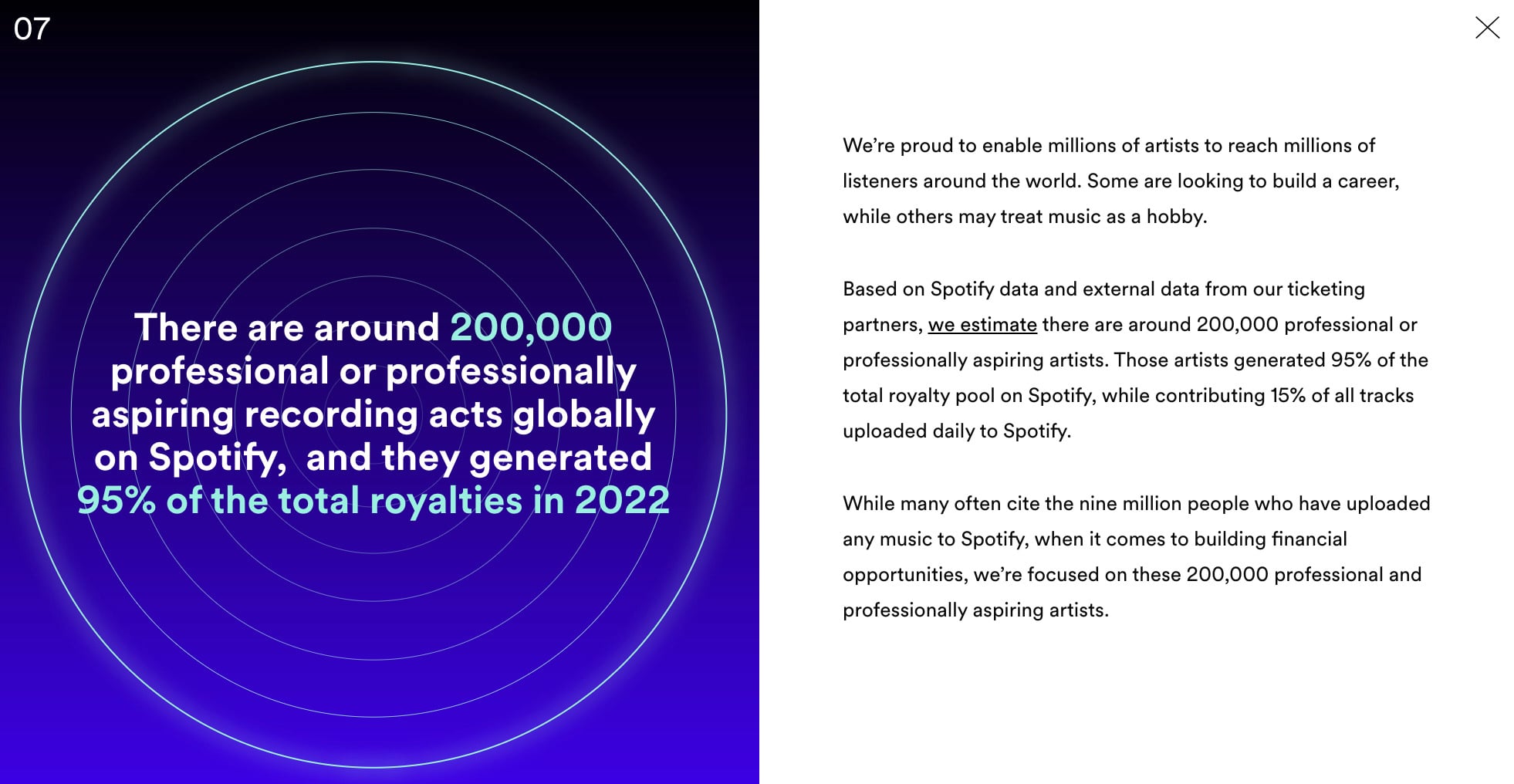 By ‘middle-class’ artists, we are really referring to what Spotify refers to as “professional or professionally aspiring” artists – i.e. the sub-section of 200,000 artists out there who make up just 2.2% of the 9 million acts on streaming services today… but who generate 95% of the royalties paid out.