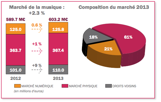 The French market generated 603.2 million Euros in the year, a significant increase on 2012’s tally of 589.7m Euros, according to French trade body SNEP.