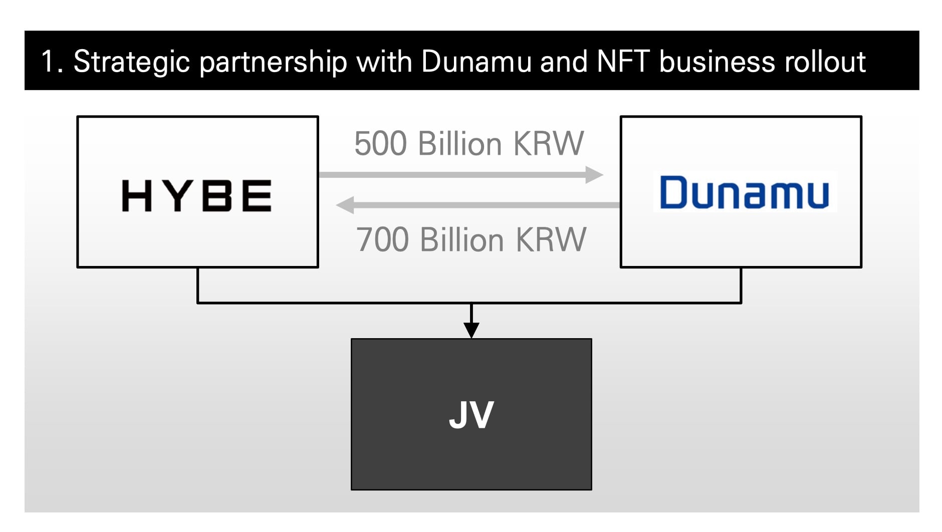 The strategic partnership will see HYBE acquire what Korean news site Pulse reports is 861,400 shares in Dunamu for 500 billion South Korea won (approx. $421m at current exchange rates). Dunamu meanwhile, according to a regulatory filing, will acquire 2,302,570 shares in HYBE for 700 billion South Korea won ($590m).
