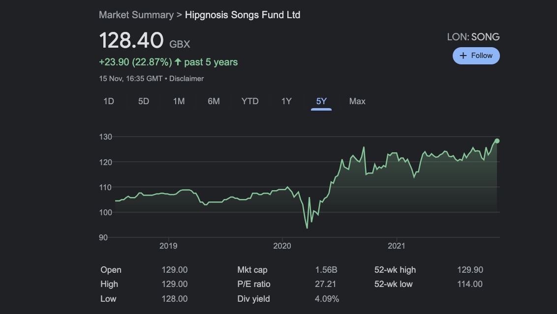 The value of Hipgnosis Songs Fund, the publicly-traded music right acquisition company listed in London, hit an all-time high today (November 15).