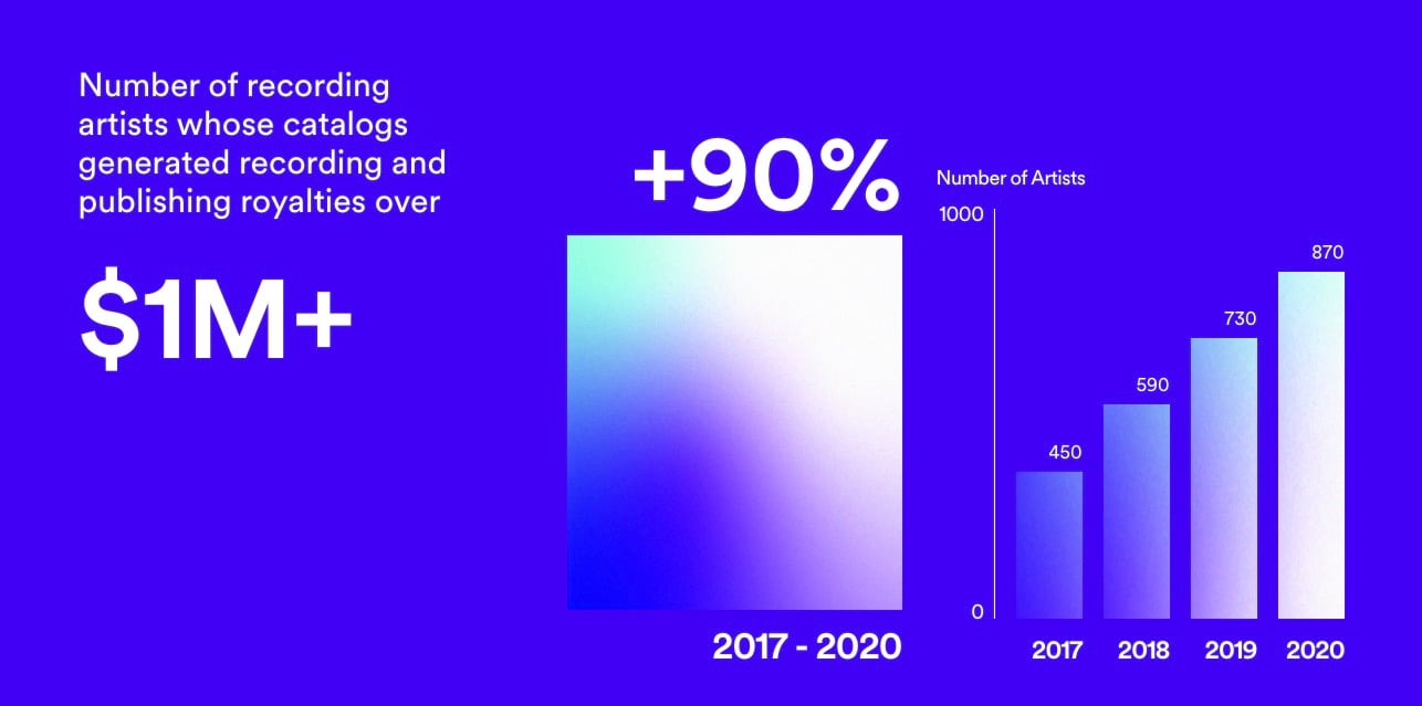 And the $1 million-plus-per-year club counted 870 artists in 2020.