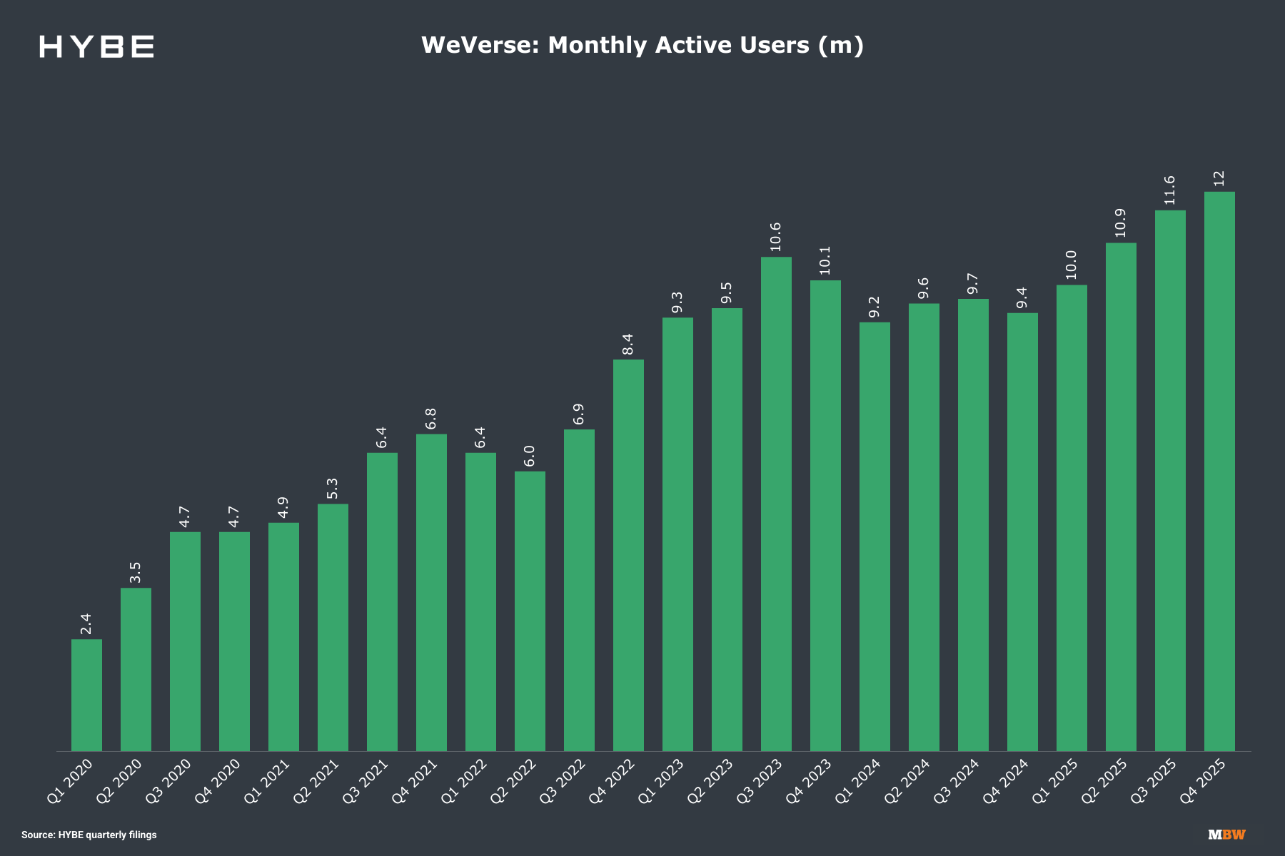 HYBE-owned superfan service Weverse hit 12 million monthly active users (MAUs) in 2025 – a new high-water mark for a platform that has become one of the most closely watched experiments in direct-to-fan monetization in the global music business.