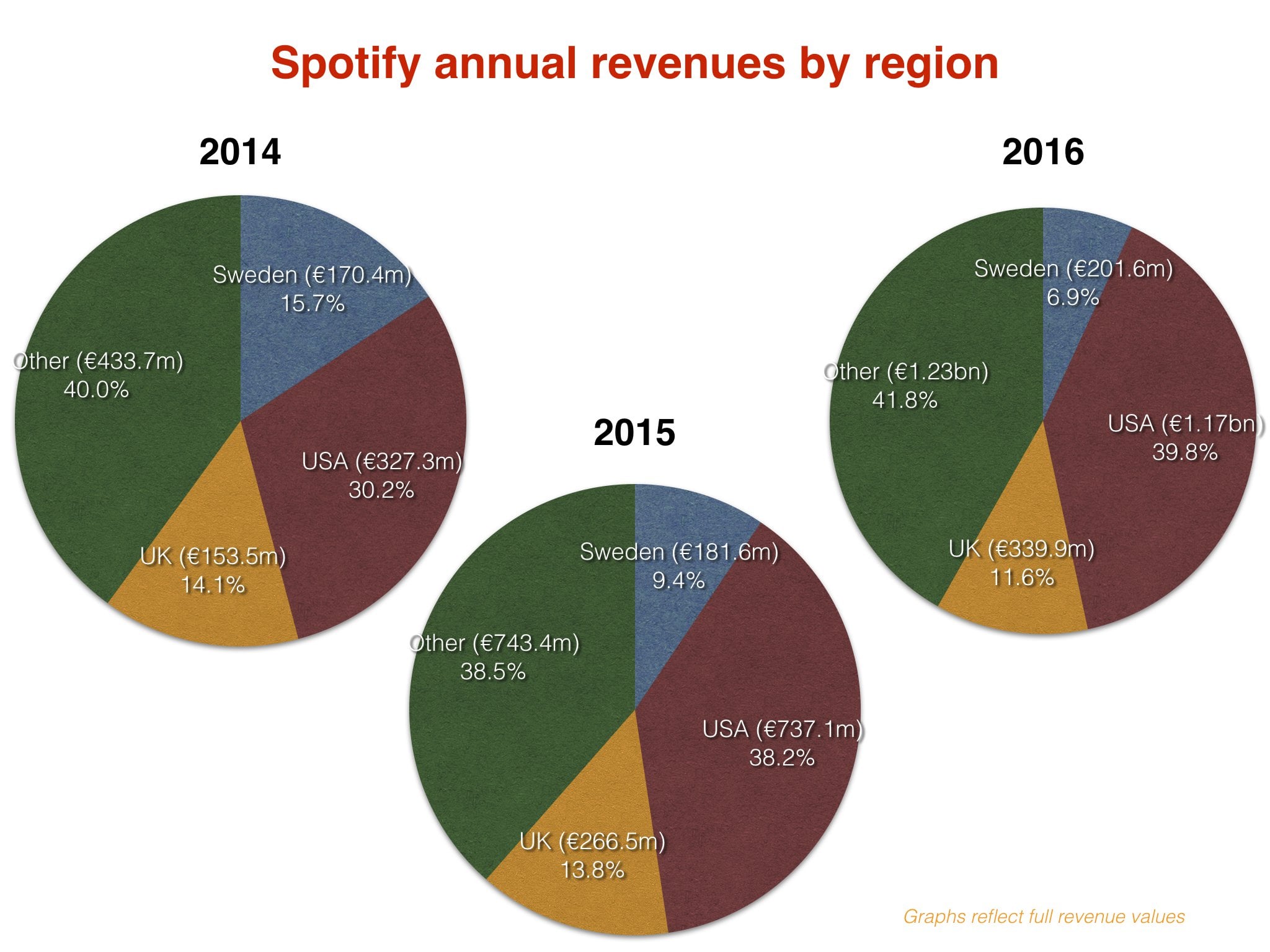 Between 2014 and 2016, Spotify’s annual marketing spend increased by a whopping €234m ($259m) – more than doubling over the course of just two years.