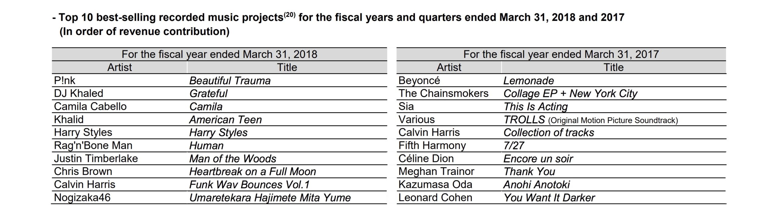 This isn’t a perfect system; it risks overplaying the major record company’s global business slightly by converting a chunk of revenues from Sony Music Entertainment Japan (which would usually be straight-reported in Yen) into US dollars.