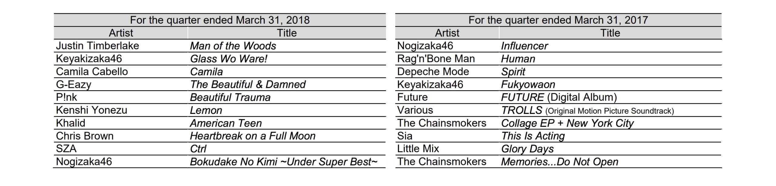 Sony’s results also tell us how the company’s global recorded music operation fared in calendar Q1 2018 (its fiscal Q4) – ie. the three months to end of March this year.