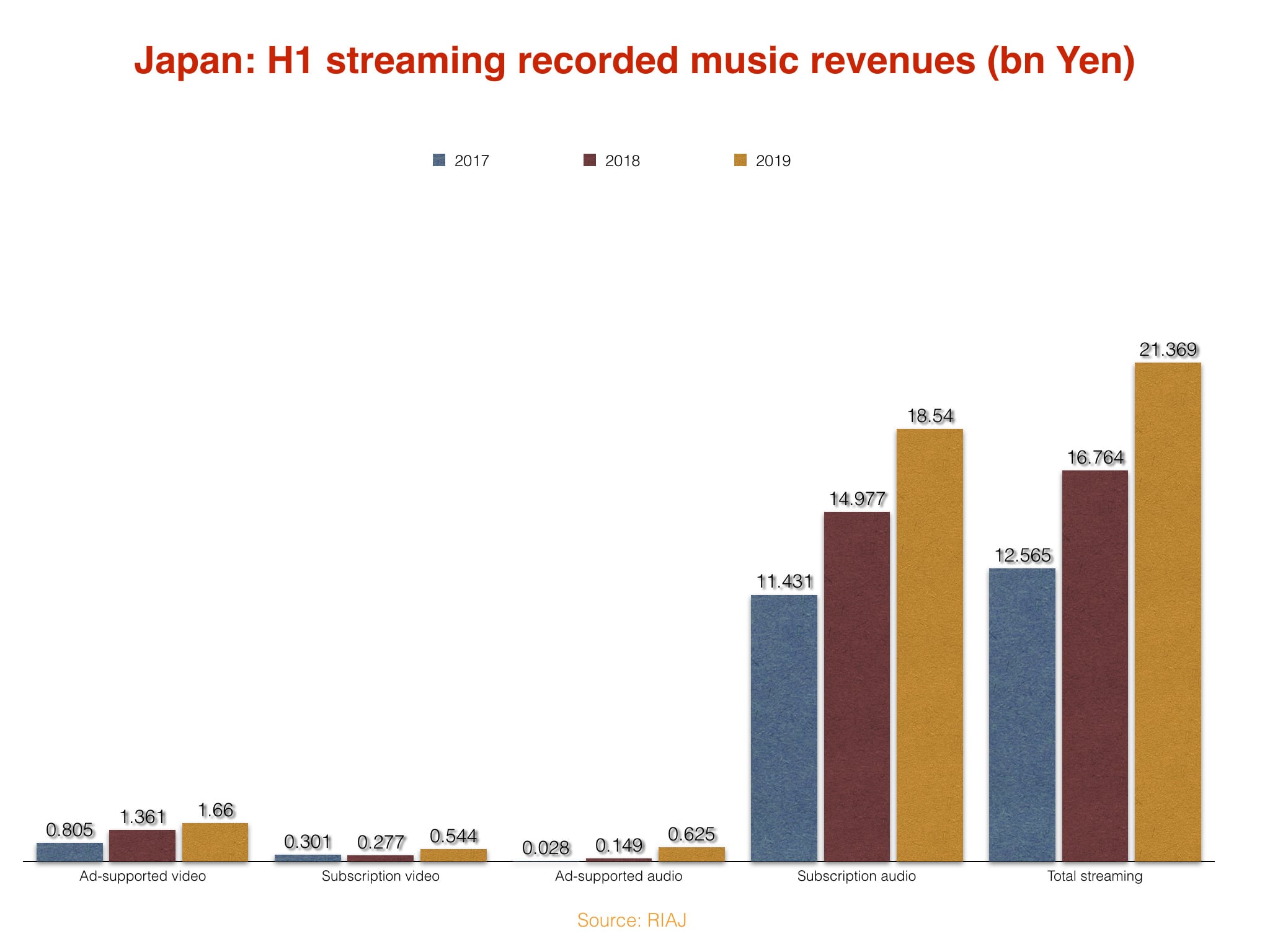 (At the US dollar level, converted at the prevailing rate of each year, Japan’s streaming revenue growth actually slowed down in H1 2019 too, but, hey, let’s take the good news where we find it…)
