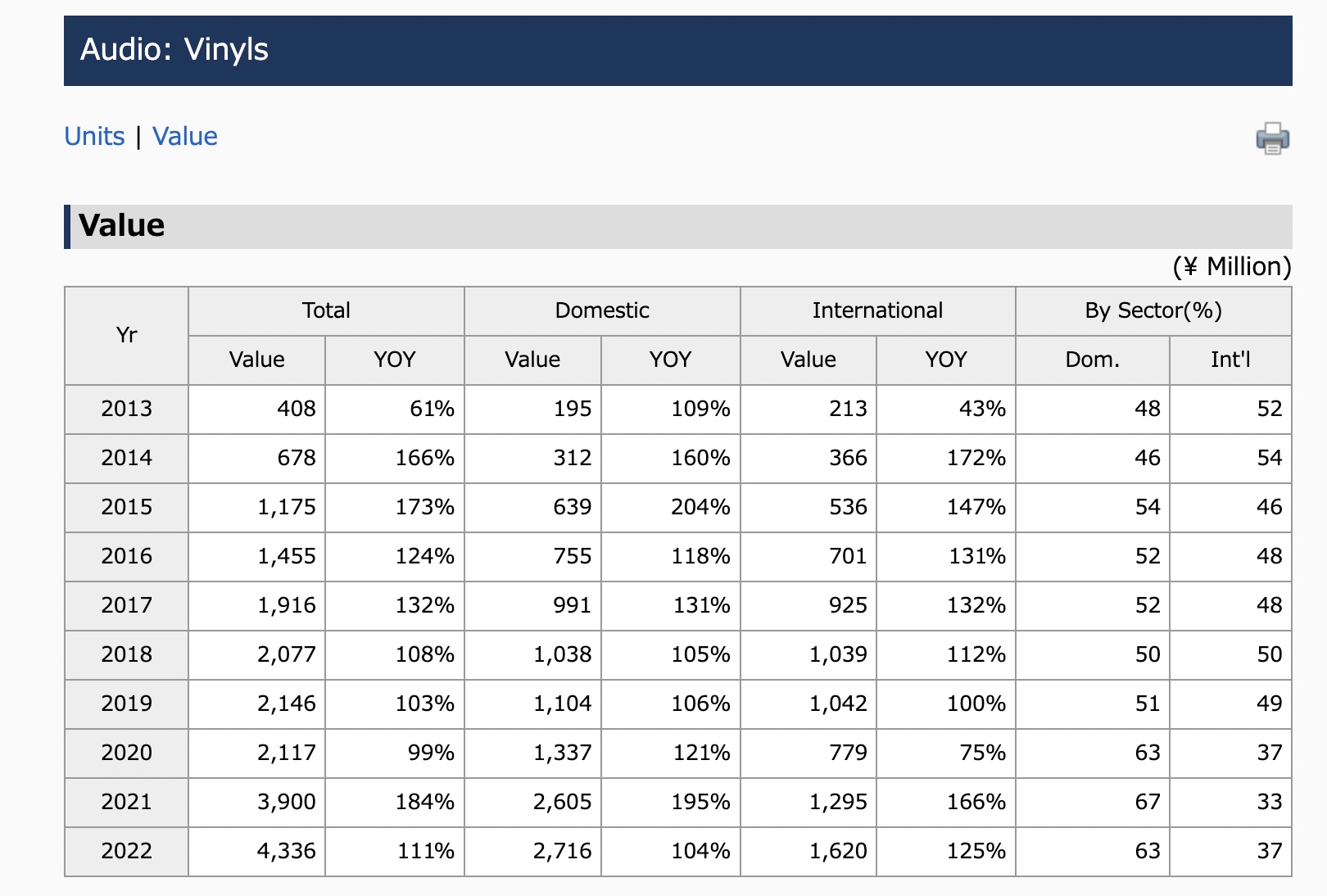 In terms of other physical formats, Vinyl sales generated revenues of 4.336 billion yen (USD $32.9m) in 2022, up 11% YoY.