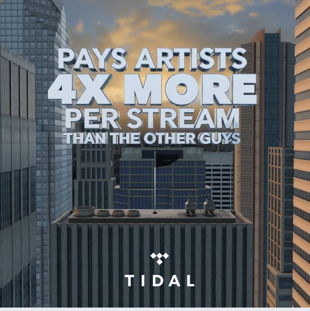 In addition to showing off about TIDAL’s hi-def audio capabilities, the ad – as seen on social media this week – makes the bold claim that TIDAL “pays artists 4X more per stream than the other guys”.