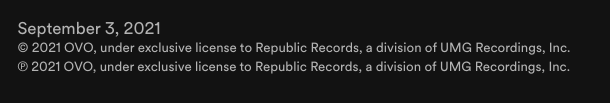 But Drake’s more recent material, including last year’s Certified Lover Boy, carries this credit on streaming services: “OVO, under exclusive license to Republic Records.”