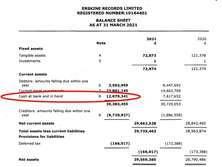 (Erskine Records Ltd, according to UK Companies House, was sitting on GBP £12.08 million in cash at the close of March this year. Harry Styles; no fool.)