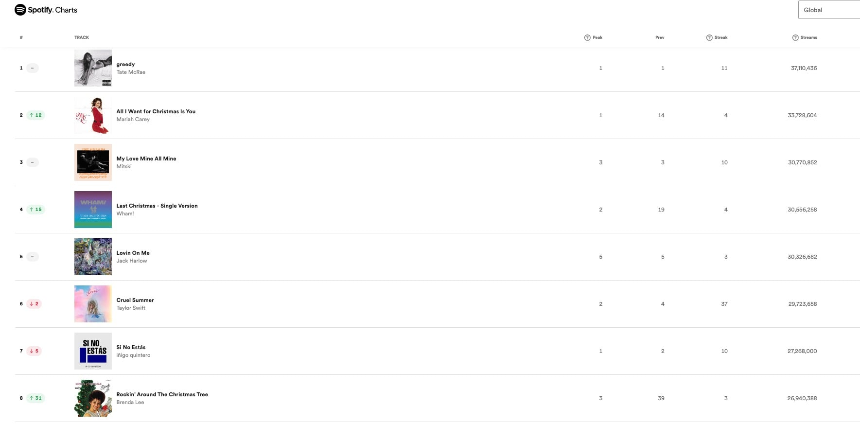 Spanish artist Iñigo Quintero’s Si No Estás rose to the top of Spotify‘s Global Top 50 in late October – and has stubbornly refused to leave the upper reaches of digital charts ever since. (Even amongst the early December onslaught of Christmas standards in Spotify’s flagship global chart, the Spanish-language track currently remains comfily snuggled in at No.7.)