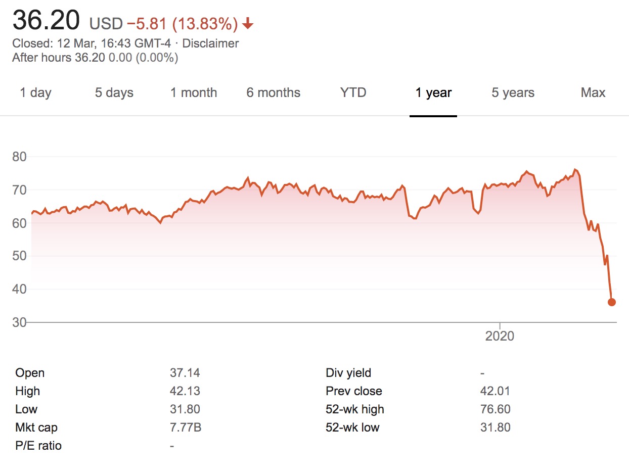 After a shocking 16.6% fall in US-based Live Nation’s market cap value yesterday (March 11), today (March 12) hasn’t brought any better news.