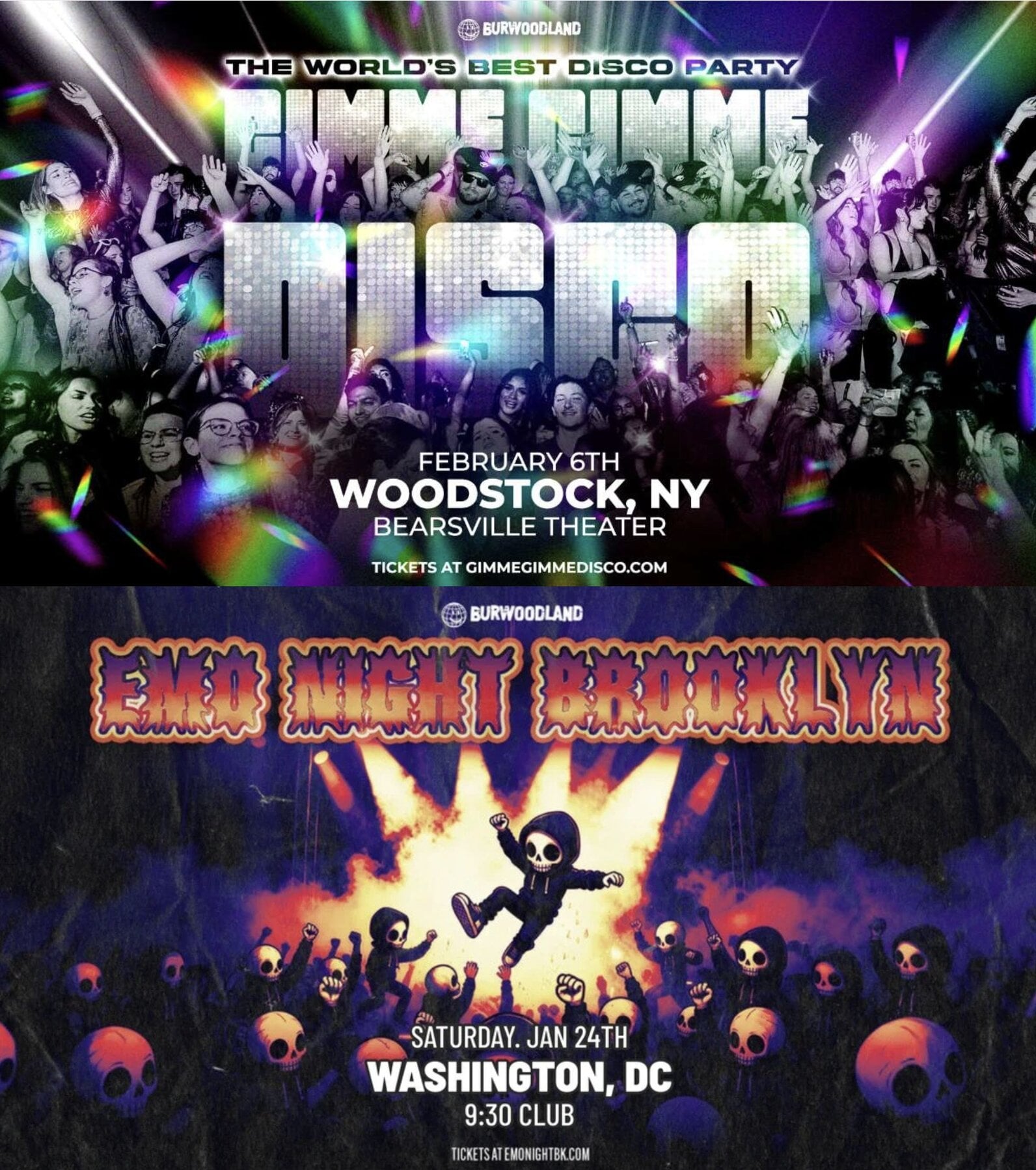 Burwoodland’s flagship club night brands include Gimme Gimme Disco and Emo Night Brooklyn