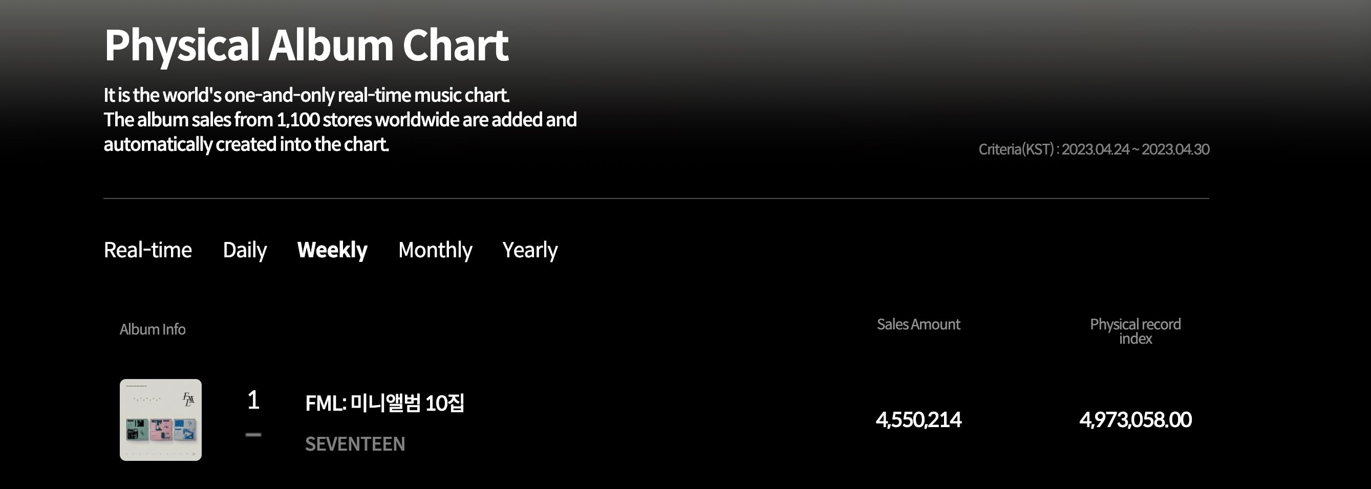 Seventeen’s FML sold 4,550,214 copies during its first week.