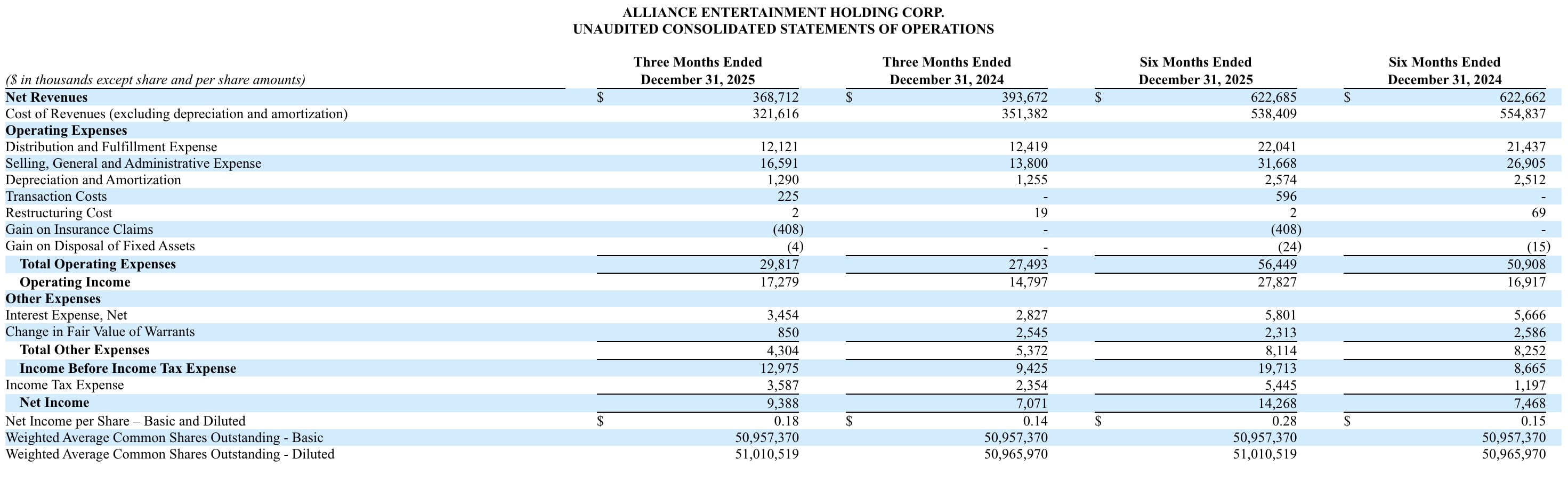 “With a structurally stronger margin profile and a growing pipeline of exclusive content, we believe Alliance is well positioned to deliver durable profitability and long-term value for our shareholders.”