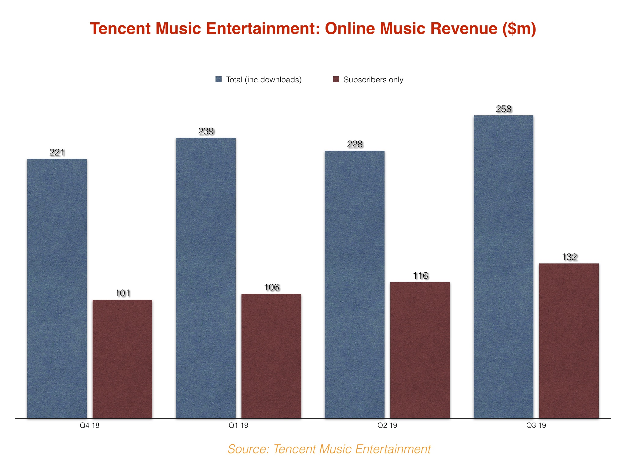 Despite the growth in online music revenues at TME in Q3, these sales remain a minority vertical for the company.