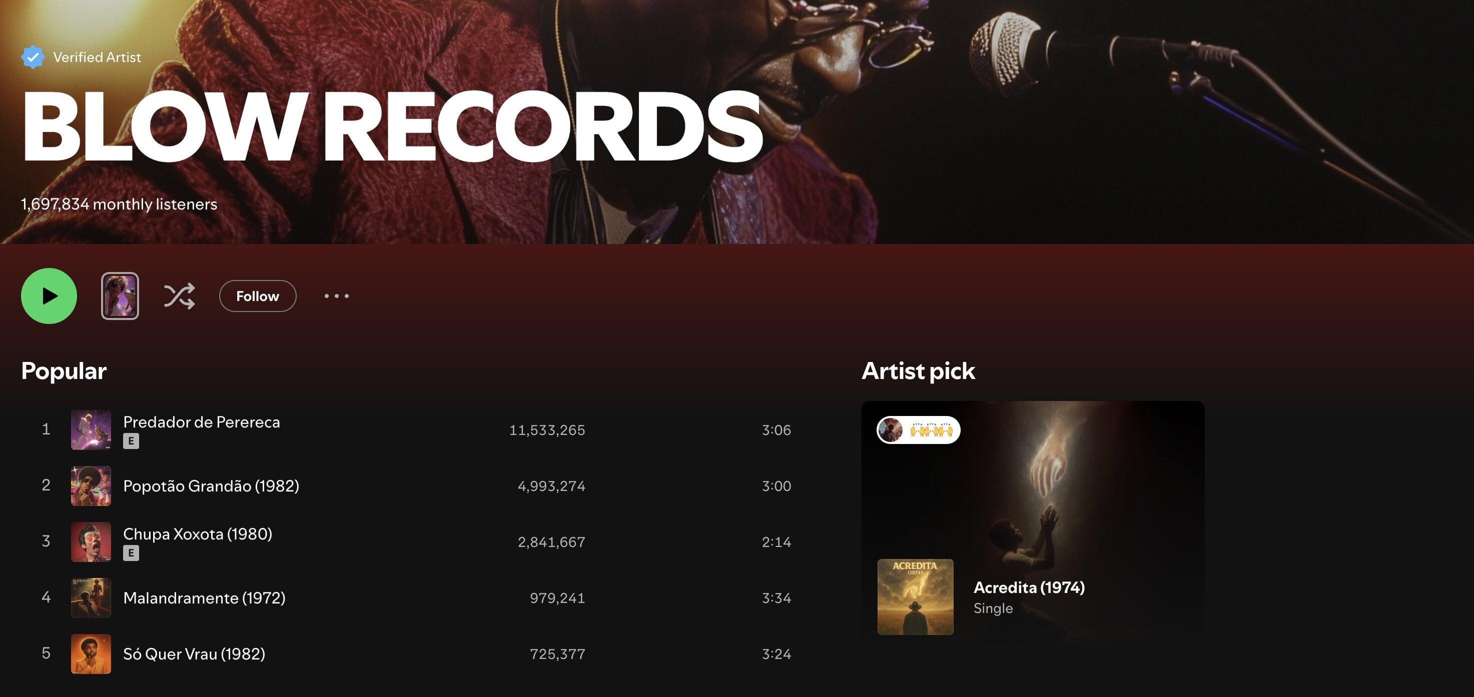 Still, we’ve been tipped off about other seemingly AI-generated acts doing a roaring trade today: check out Blow Records, with 1.7 million Spotify monthly listeners; its biggest track has more than 11 million plays.