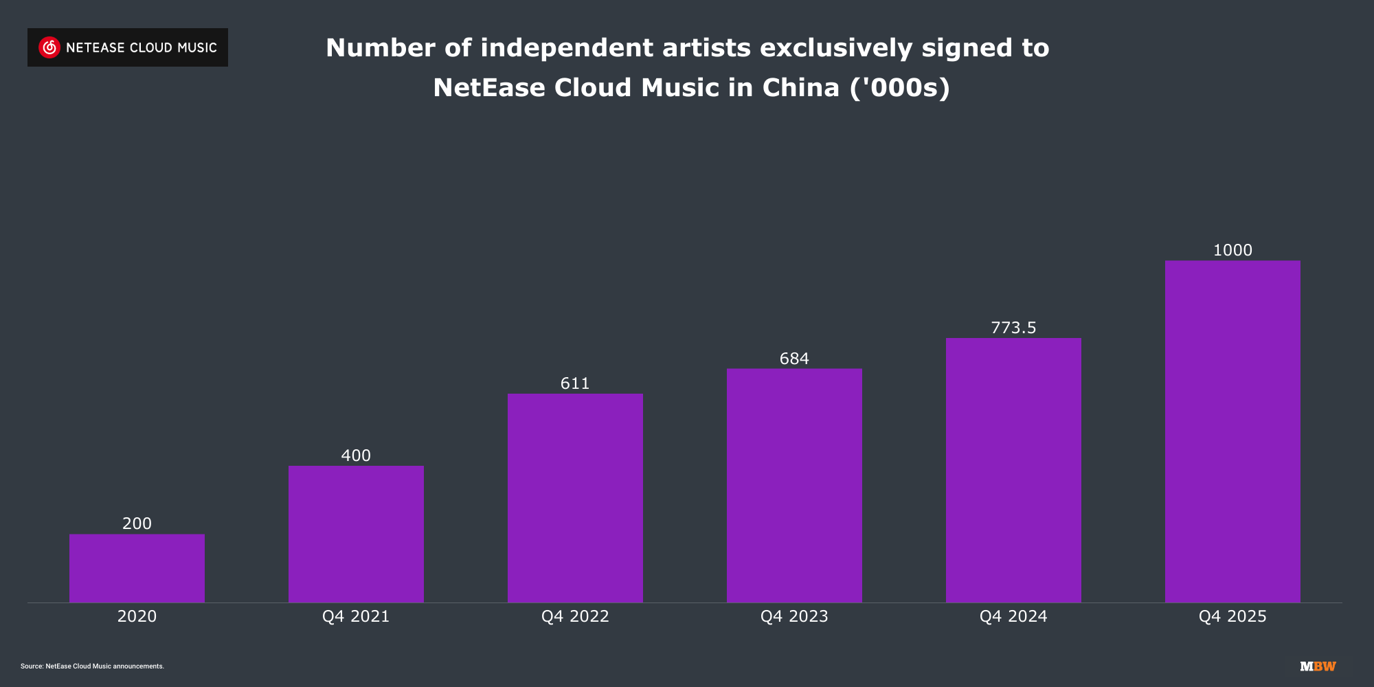 As MBW has previously reported, the combined number of artists signed directly to the independent distribution and label services arms of TME and NCM stood at approximately 1.4 million as of mid-2025. With NCM alone now surpassing 1 million, that combined figure has likely grown to well over 1.5 million.