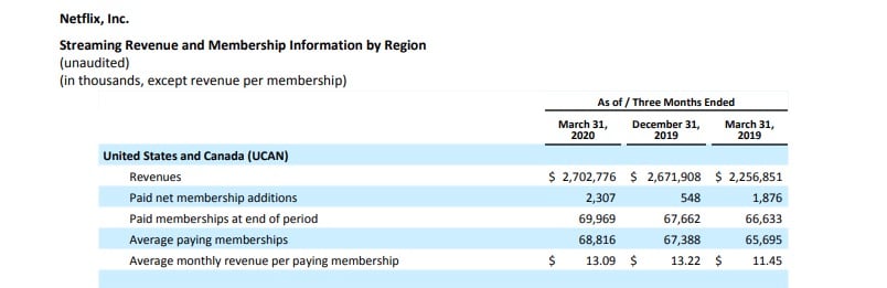 The company doesn’t break down this ‘ARM’ (aka: subscriber ARPU) figure by region anymore, but it used to: We know, for example, that in Q1 2020, the average paying Netflix subscriber in the US was shelling out $13.09 per month, up by $1.64 on the same figure in Q1 2019 (see below).