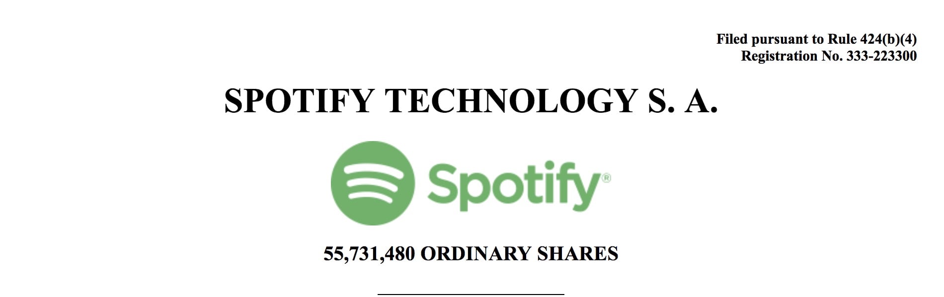According to documents filed with the US Securities and Exchange Commission (SEC) in the past month, Spotify has registered to make available an 55,731,480 ordinary shares on the NYSE today (see below chart for details).