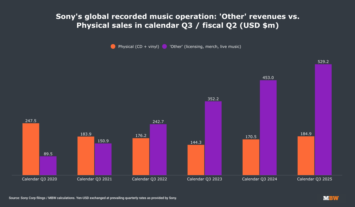 In fact, ‘Other’ generated nearly three times the revenues of global physical music sales for Sony in the same period ($184.9M).