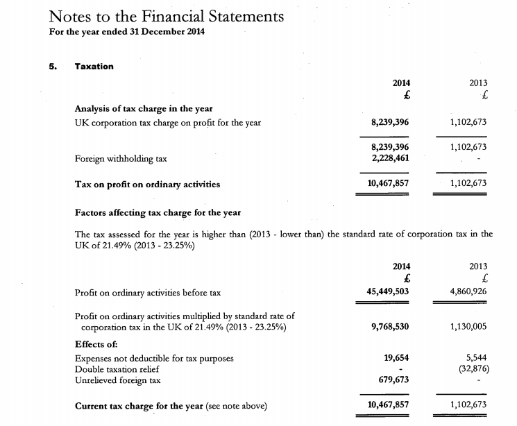 According to the firm’s filings, £8.24m of that figure was paid in UK corporation tax – 18.1% of its £45.4m pre-tax profit.