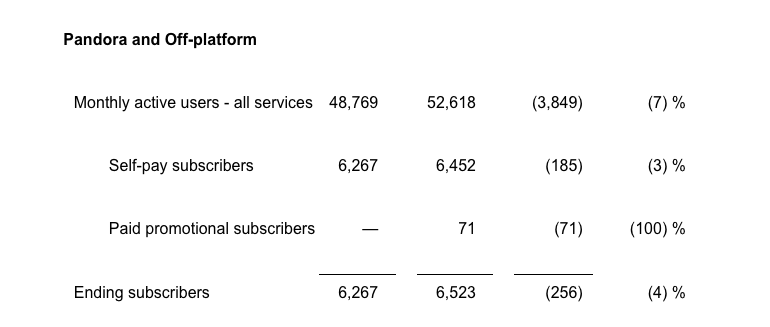That was down by over 3.8 million on the 52.62 million MAUs that were using Pandora in the same period of 2021.