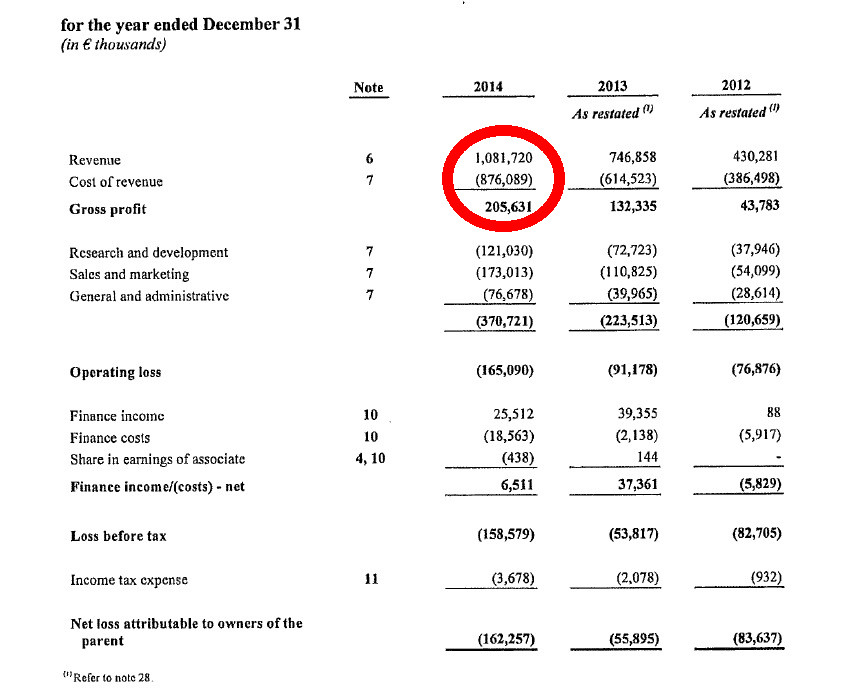 These percentages are high for Pandora, which is more used to seeing 40% – 50% of its income paid out to labels and publishers, but they’re still significantly smaller than Spotify, for example, whose ‘cost of revenue’ (mainly industry royalty payments) swallowed up 81.5% of its €1.08bn total revenue last year (see table below).