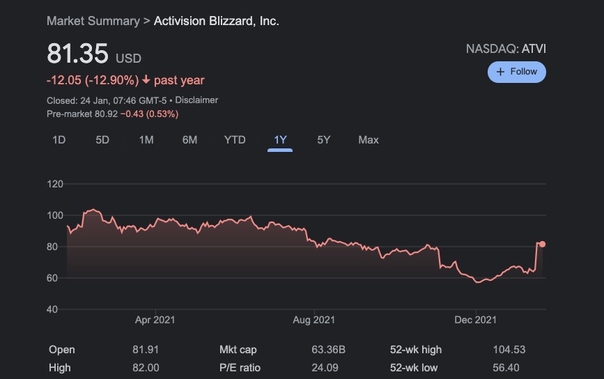 In late 2021, as damaging revelations about company culture were reported in the Wall Street Journal, Activision Blizzard’s stock plummeted: Its market cap tumbled from $80.4 billion in February 2021 down to $44.6 billion in early December.
