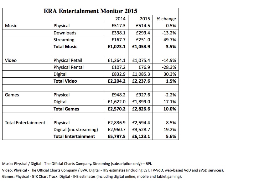 UK consumers purchased £514.5m of physical music in 2015, down from £517.3m in 2014, according to new stats from the Entertainment Retailers Association.