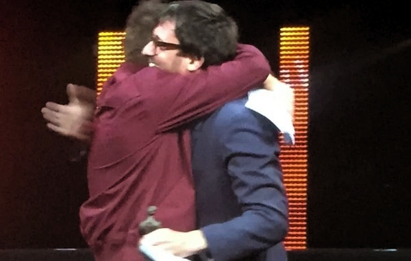 “Thanks to David Holmes for his loving embrace, but it was a little too strong, man. If you want to embrace a songwriter tonight, do it – but, please, do it gently.”