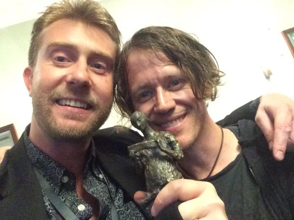 Kobalt-signed Iain Archer, winning with James Bay for Hold Back The River, issues a health and safety warning. (Pictured with BASCA’s Dan Moore.)